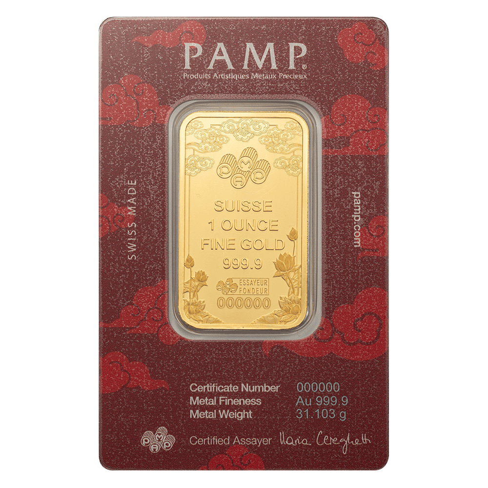 - Reverse: Displays the PAMP logo, lotus flowers, weight and purity along with a unique serial number.