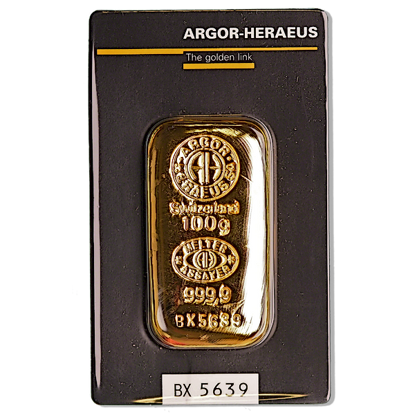 Whether you are diversifying your portfolio, safeguarding wealth against inflation, or starting your journey in physical gold ownership, the 100 Gram Argor-Heraeus Swiss Cast Gold Bullion Bar is a reliable, elegant, and enduring choice.