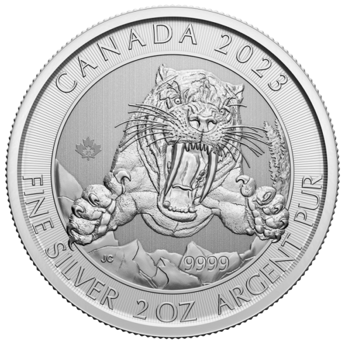 ICE AGE SERIE – Smilodon Sabre-tooth Cat 2 oz 99.99% Silver Bu Coin Canada 2023