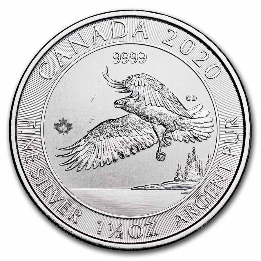 These 2020 1.5 oz Canadian Silver Bald Eagle Coins are available with a protective plastic flip. These coins were part of a broader Canadian Wildlife Series featuring 1.5 oz silver coins as the most unique issue of the series.