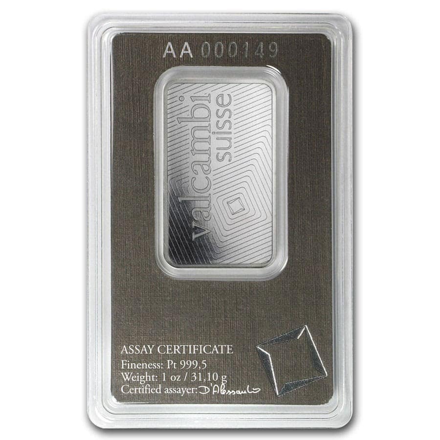Platinum is another precious metal that can play an important role in diversifying your holdings. Valcambi is one of Europes most respected refiners. Based in Switzerland, Valcambi was founded in 1961 and refines several tons per day. They make some of the finest precious metals bars in the entire world. Their platinum bars are considered to be some of the best on the market and you will not be disappointed.